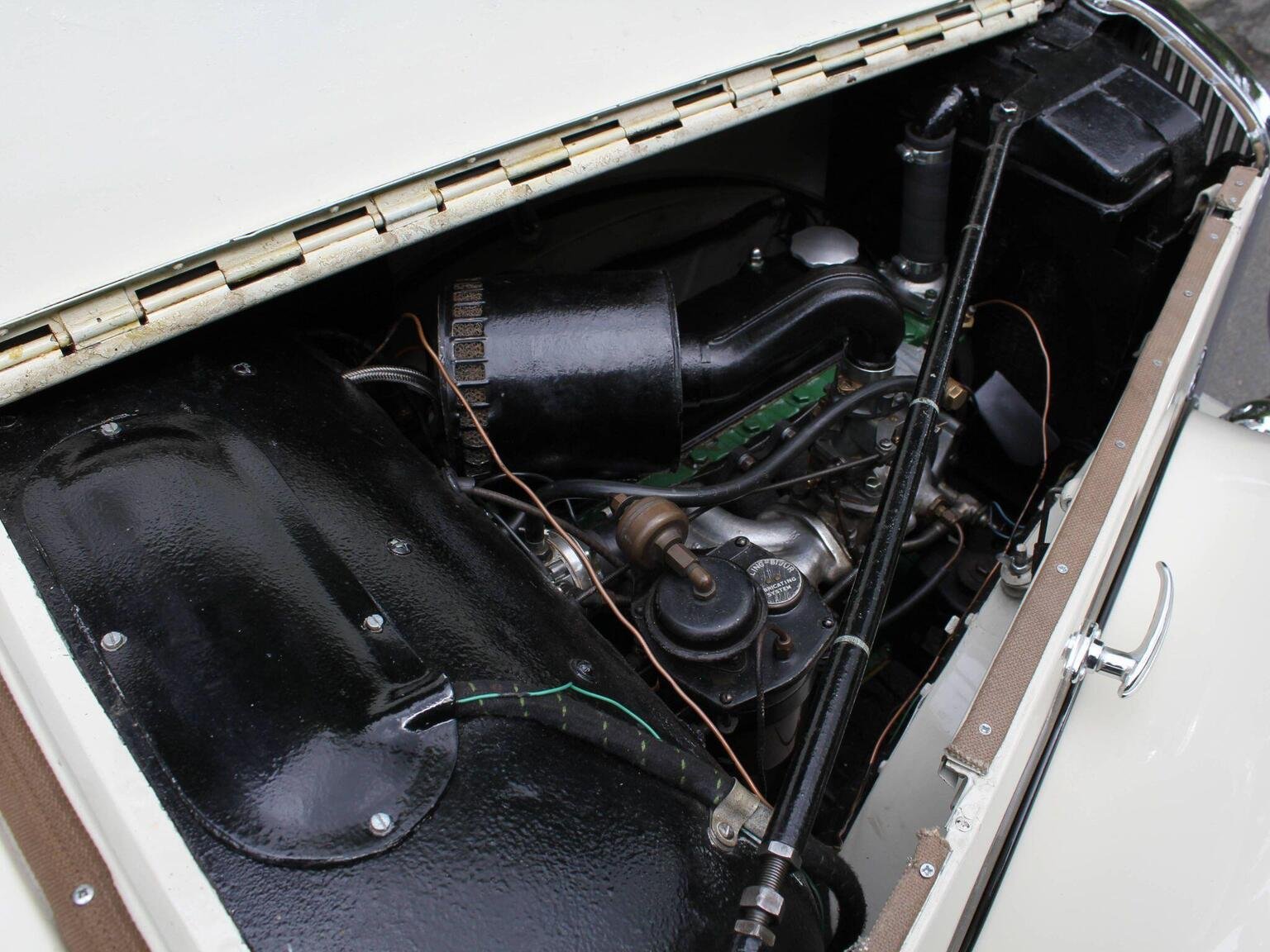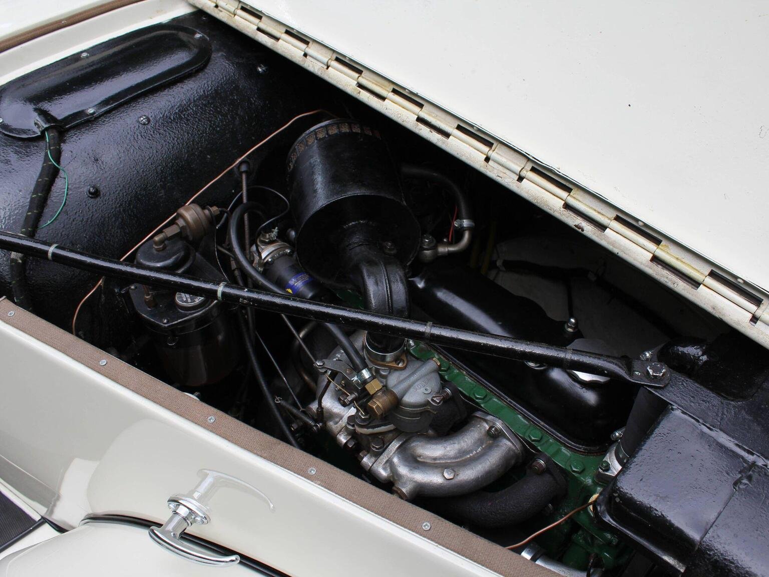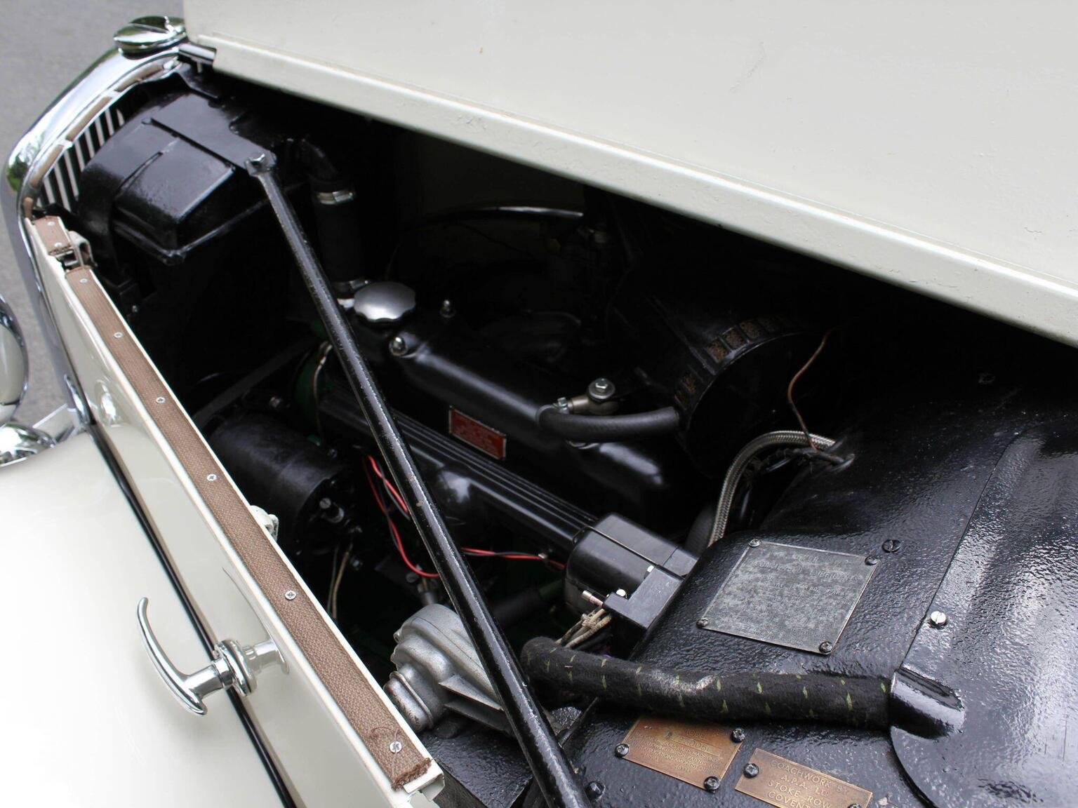 Its presented very well with an impressive paint finish and whilst not pristine due to many years since its last re-paint, it gleams and has a high quality finish. Chrome work is excellent throughout and the general presentation of the car is impressive. The body is excellent, the frame superb and chassis excellent. The engine bay is very well presented having being nicely detailed, and the weather equipment is all excellent. The upholstery has a lovely aged feel to it, the dashboard and gauges are excellent and the cars tool kit is present under the dash.