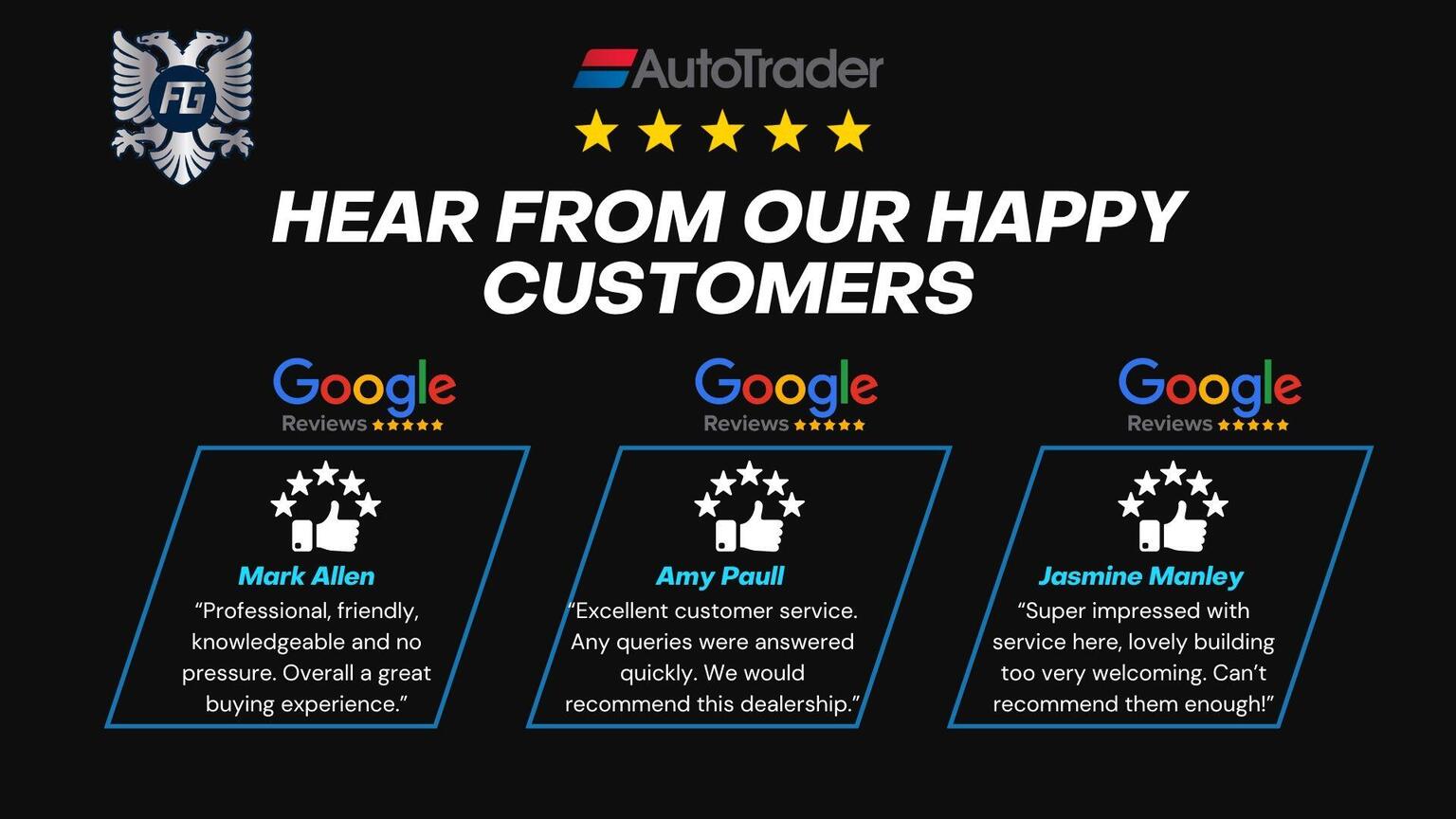 Join hundreds of happy customers who’ve rated us 5 stars and experience why F G Cars is the trusted choice for your next vehicle.